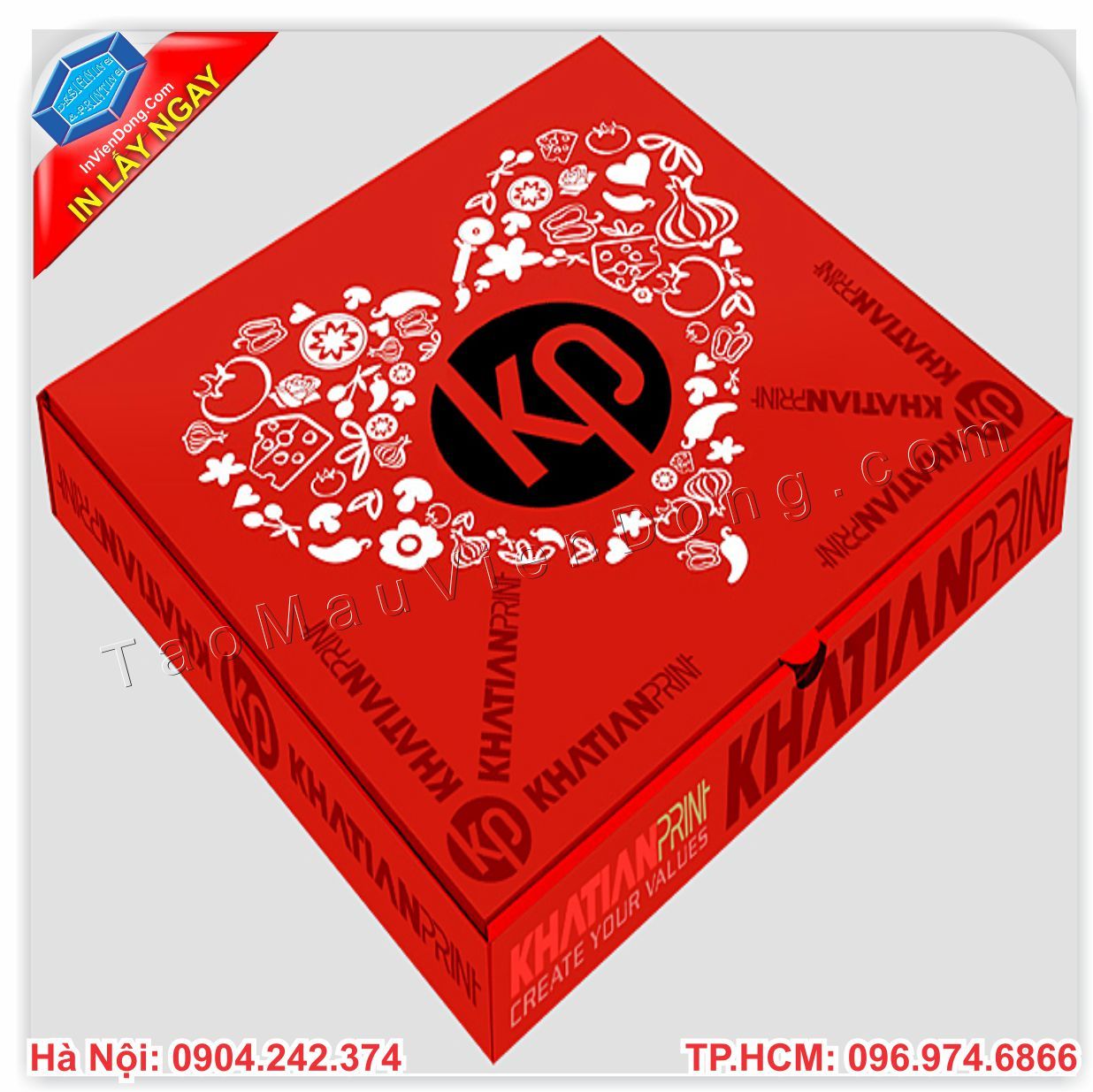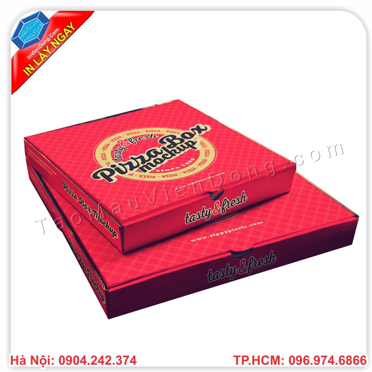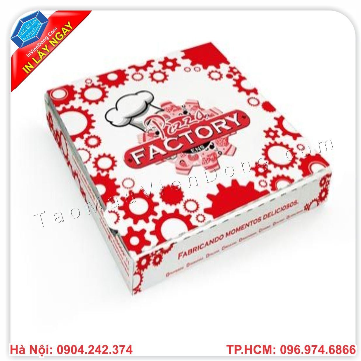 Pizza là món ăn được khá nhiều giới trẻ ưa thích. Ngoài việc đến cửa hàng ngồi ăn, thì rất nhiều người không tiện đi lại nên gọi ship. Nhiều cửa hàng muốn khi bánh đến tay người sử dụng phải vẫn còn nóng, không bị bóp méo bánh, không bị chảy bánh... Thì chúng tôi, công ty in Viễn Đông chuyên cung cấp, bán sẵn và in hộp giấy đựng Pizza đảm bảo chất lượng, chất liệu cứng cáp, in ấn được hình ảnh logo thương hiệu của chính bạn. Mà giá thành chỉ từ 3000đ