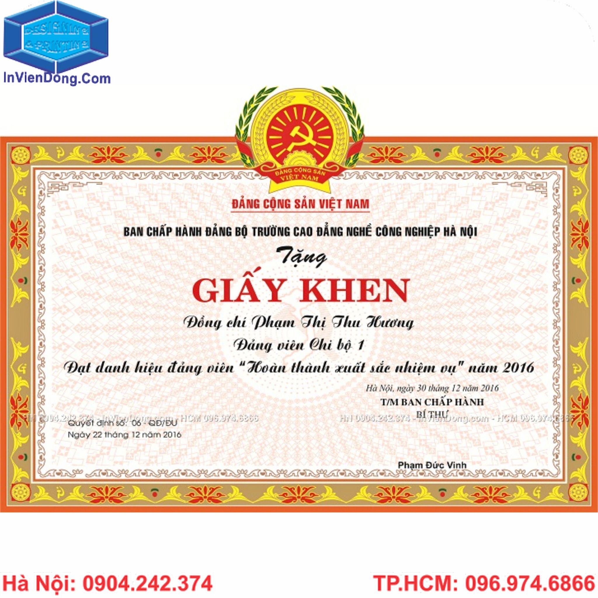 - Sản xuất sản phẩm giấy khen trực tiếp tại cửa hàng, không qua trung gian. In Viễn Đông sẽ in test màu trước khi cho sản xuất cho khách.