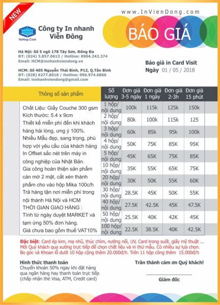 Bảng báo giá in danh thiếp lấy ngay.