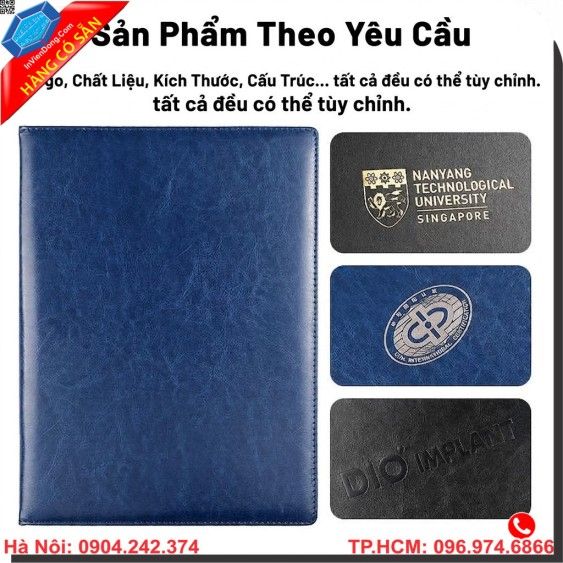Hỗ trợ thiết kế miễn phí: Đội ngũ thiết kế chuyên nghiệp sẽ giúp bạn căn chỉnh logo và nội dung lên bìa da kẹp hồ sơ sao cho hài hòa và sang trọng nhất.