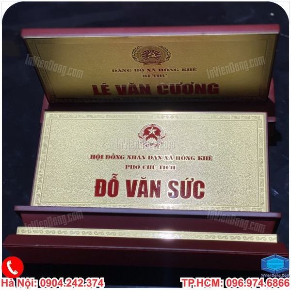 Là chủ một công ty doanh nghiệp lớn có phải bạn đang tìn nơi in và làm biển chức danh cho mình và nhân viên của mình phải không? Tuy hiện nay có rất nhiều công ty cơ sở in và làm biển chức danh nhưng bạn lại không biết nơi nào làm biển tốt mà giá thành lại rẻ hơn. IN NHANH VIỄN ĐÔNG hiện nay là cơ sở in ấn và làm biển chức danh uy tín chất lượng hàng đầu tại Hà Nội. Khi đến với chúng tôi bạn sẽ không cần phải lo lắng nhiều về việc in ấn và thiết kế bảng. Bởi tại đây chúng tôi đã có đội ngũ nhân viên thiết kế đội ngũ nhân viên thiết kế có kinh nghiệm lâu năm cùng máy móc công nghệ hiện đại cao cấp. VIỄN ĐÔNG đảm bảo sẽ đem đến cho bạn một mẫu sản phẩm biển chức danh để bàn đẹp đúng mẫu mã chất liệu yêu cầu.