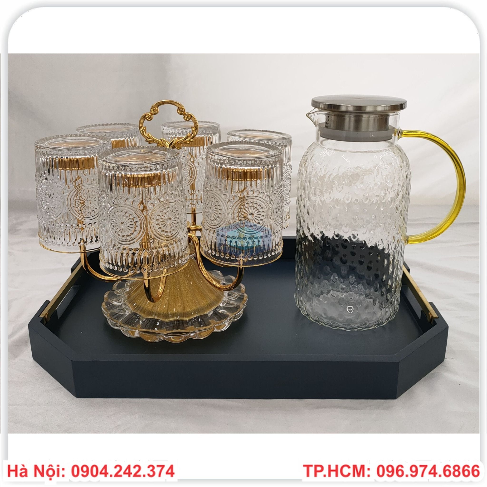 Bộ cốc thủy tinh kèm khay