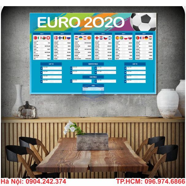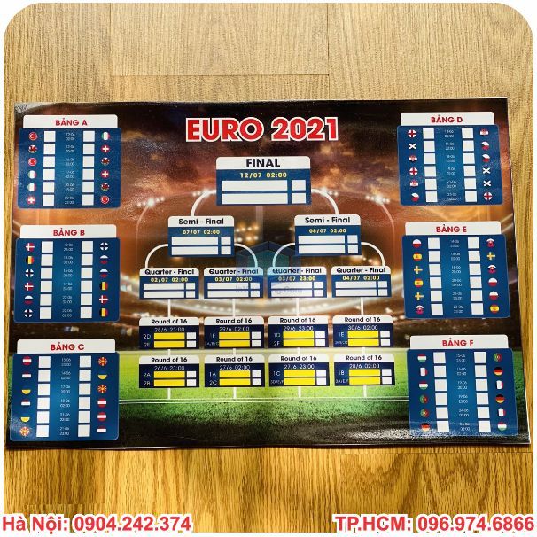 Euro 2021 Lịch thi đấu chính xác chi tiết cụ thể In trên giấy bìa cứng cao cấp có dán băng dính 2 mặt phía sau để dán lên bảng hay tường tiện lợi.