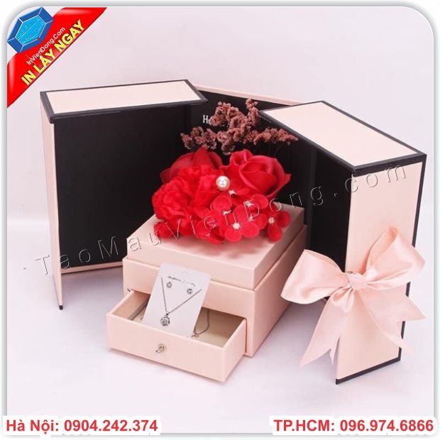 | Quy cách | Hộp đựng hoa cao cấp âm dương , hộp dây móc có khóa nam châm từ tính có cắt bóng kính mạ nhũ vàng hay nhũ bạc thúc nổi 3D hoa sen, hoa mai,cành đào ... | |