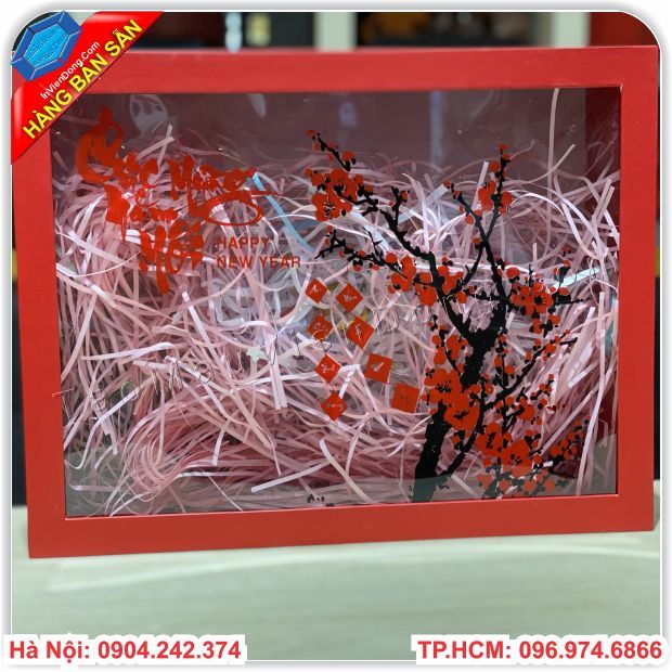 - Việc in ấn những thông tin logo, thông tin thương hiệu và doanh nghiệp đồng thời gia công thật đẹp mắt nổi bật giúp mọi người chú ý. Thì mỗi hộp đựng quà tết sẽ là công cụ quảng bá doanh nghiêp/sản phẩm đến với người mua vô cùng hiệu quả.