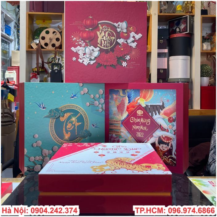 Vậy là một năm lại sắp trôi qua và không bao lâu nữa chúng ta sẽ lại chào đón một năm mới 2022 với nhiều điều may mắn, tốt đẹp. Với nhiều doanh nghiệp thì đấy chính là thời cơ tốt nhất trong năm để tăng gia sản xuất và phục hồi doanh nghiệp, đặc biệt là trong thời kì kinh tết khó khắn như hiện nay. Là một doanh nghiệp đang kinh doanh những mặt hành quà tết, có phải hiện tại bạn đang đau đầu trong việc tìm kiếm nguồn hàng về các loại hộp đựng quà tết? Tuy hiện nay thị trường đang lưu hành rất nhiều mẫu mã về hộp quà tết với đủ loại màu sắc nhưng điều đáng quan ngại chính là chất lượng của sản phẩm. Không thể phủ nhận rằng hiện nay có rất nhiều xưởng in hộp trên thị trường nhưng không phải nơi nào cũng in ấn nhanh, chất lượng mà lại có giá thành rẻ, đó là chưa bàn đến chất lượng của thành phẩm sau in.