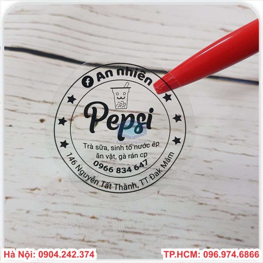 Xưởng in nhanh nhiều mẫu tem decal trong suốt phục vụ khách hàng tại Hà Nội.Đa dạng về kích thước,kiểu dáng,mặt sau có lớp keo dính chắc chắn.Với công nghệ in nhanh và các máy móc nhập khẩu của Nhật Bản,đội ngũ sản xuất chuyên nghiệp,nhận thiết kế theo yêu cầu của khách hàng