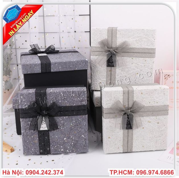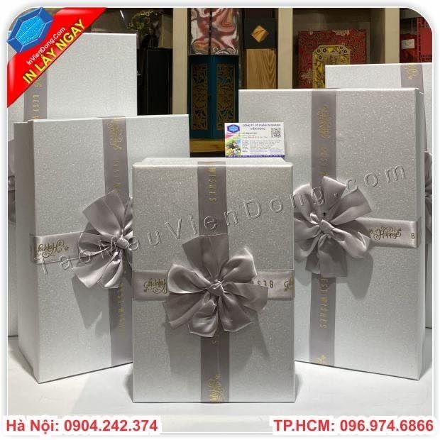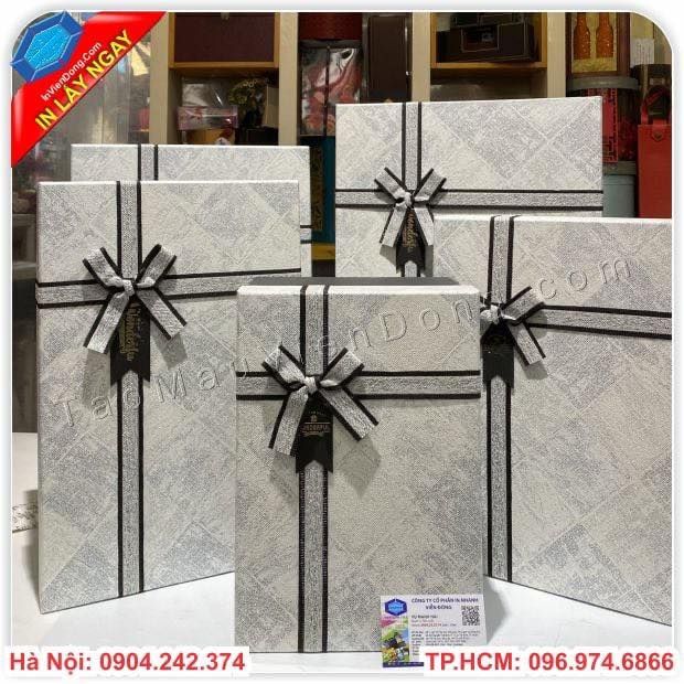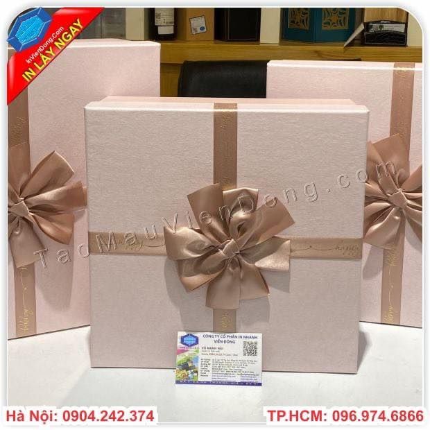 Hộp đựng quàMột món quà ý nghĩa , sang trọng nếu không muốn mất đi giá trị thì bạn không thể thiếu cho sản phẩm ấy một hộp đựng quà cao cấp phù hợp với sản bên trong hộp của mình .Với nhiều năm trong ngành in ấn chúng tôi luôn thiết kế ra những mẫu hộp độc lạ để thu hút nhiều khách hàng .Với chất liệu bìa carton lạnh được khoác trên mình những mẫu lớp giấy bồi khách nhau để tạo nên vẻ đẹp riêng biệt .Chính vì thế , tại đây chúng tôi xin giới thiệu đến bạn một địa chỉ chuyên cung cấp hộp đựng quà có sẵn cao cấp và sản xuất hộp đựng quà theo yêu cầu .