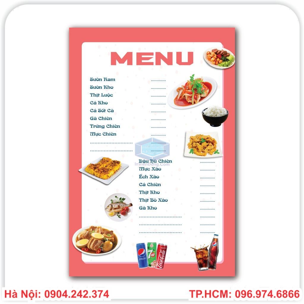 Địa chỉ in nhanh nhiều mẫu menu quán ăn