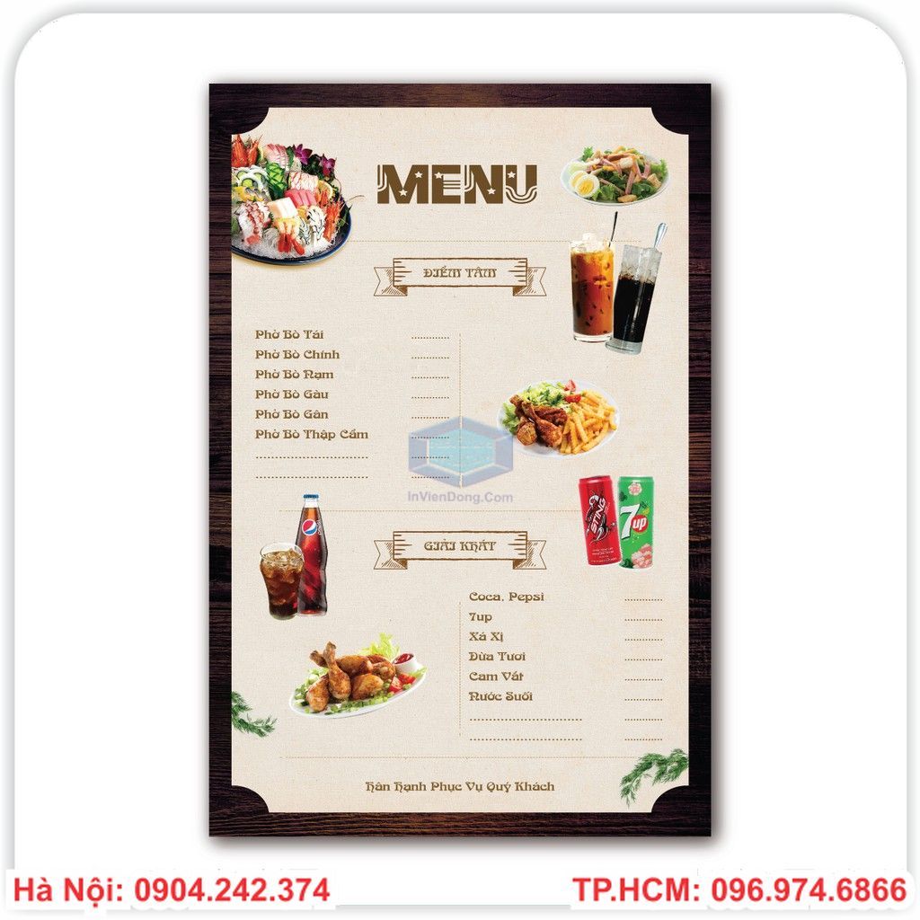 In nhanh Viễn Đông là địa chỉ chuyên thiết kế và sản xuất nhiều mẫu menu giá rẻ tại Hà Nội.Những mẫu menu thường được thiết kế sinh động với nhiều màu sắc hình ảnh sắc nét,đây cũng được coi như một chiến dịch quảng cáo hiệu quả đóng góp một phần không nhỏ vào doanh thu của cửa hàng.