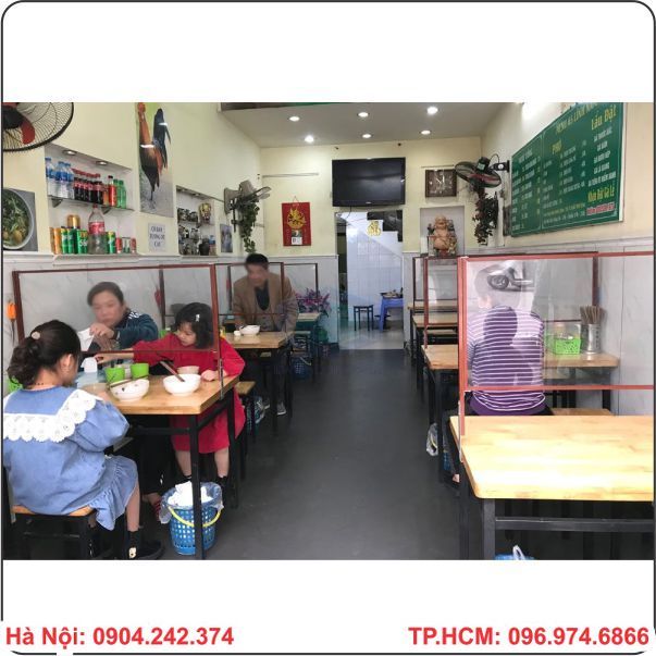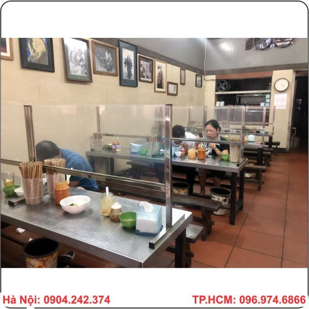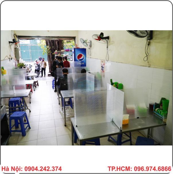 Hiện nay ngay sau khi lệnh giãn cách xã hội được nới lỏng thì hiện tại đã có nhiều quán ăn ở Hà Nội đã bắt đầu hoạt động mở trở lại sau nhiều tuần đóng cửa vì lệnh giãn cách. Tuy nhiên để đảm bảo cho việc ăn uống của khách hàng nên hiện nay tại một số quán ăn đã bắt đầu lắp đặp các tấm vách ngăn bằng nhựa giữa các khách hàng ngồi cùng bàn để trành bị lây lan Covid-19.