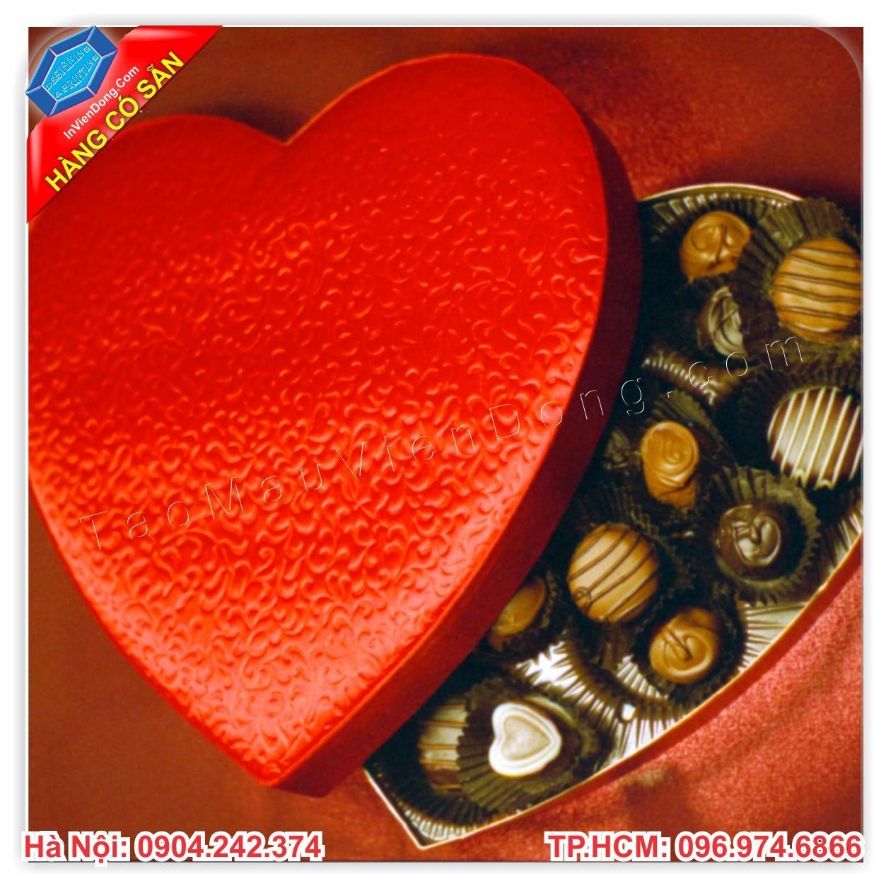 Công ty In Nhanh Viễn Đông chuyên cung cấp sỉ lẻ các loại hộp đựng socola valentine mẫu mới nhất, hãy liên hệ với chúng tôi để được tham khảo thêm các mẫu hộp đựng socola khác và được báo giá cụ thể