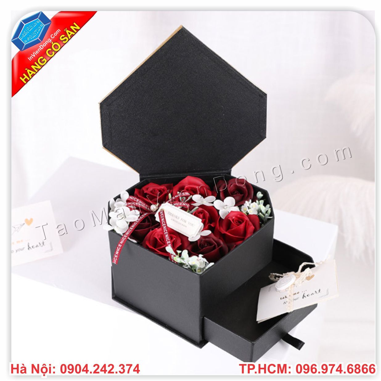 Hộp quà hoa hồng là một món quà và là vật trang trí tuyệt với dành cho phái đẹp để tăng sự nổi bật và bắt mắt của món quà.