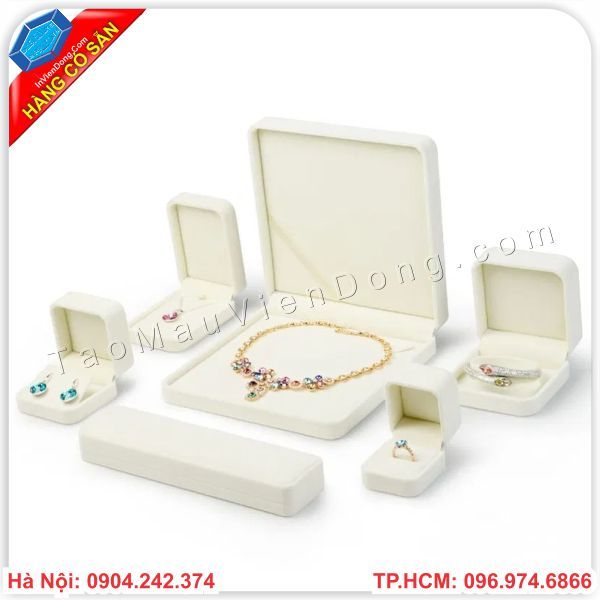 Trang sức là một món quà vô cùng quan trong và ý nghĩa đối với phái đẹp. Vậy hộp đựng trang sức lại càng phải thiết kế tỉ mỉ và sang trong hơn để tôn lên giá trị của nó In nhanh Viễn Đông tự hào là đơn vị sản xuất gia công hộp đựng trang sức với nhiều mẫu mã và giá cả phải chăng.