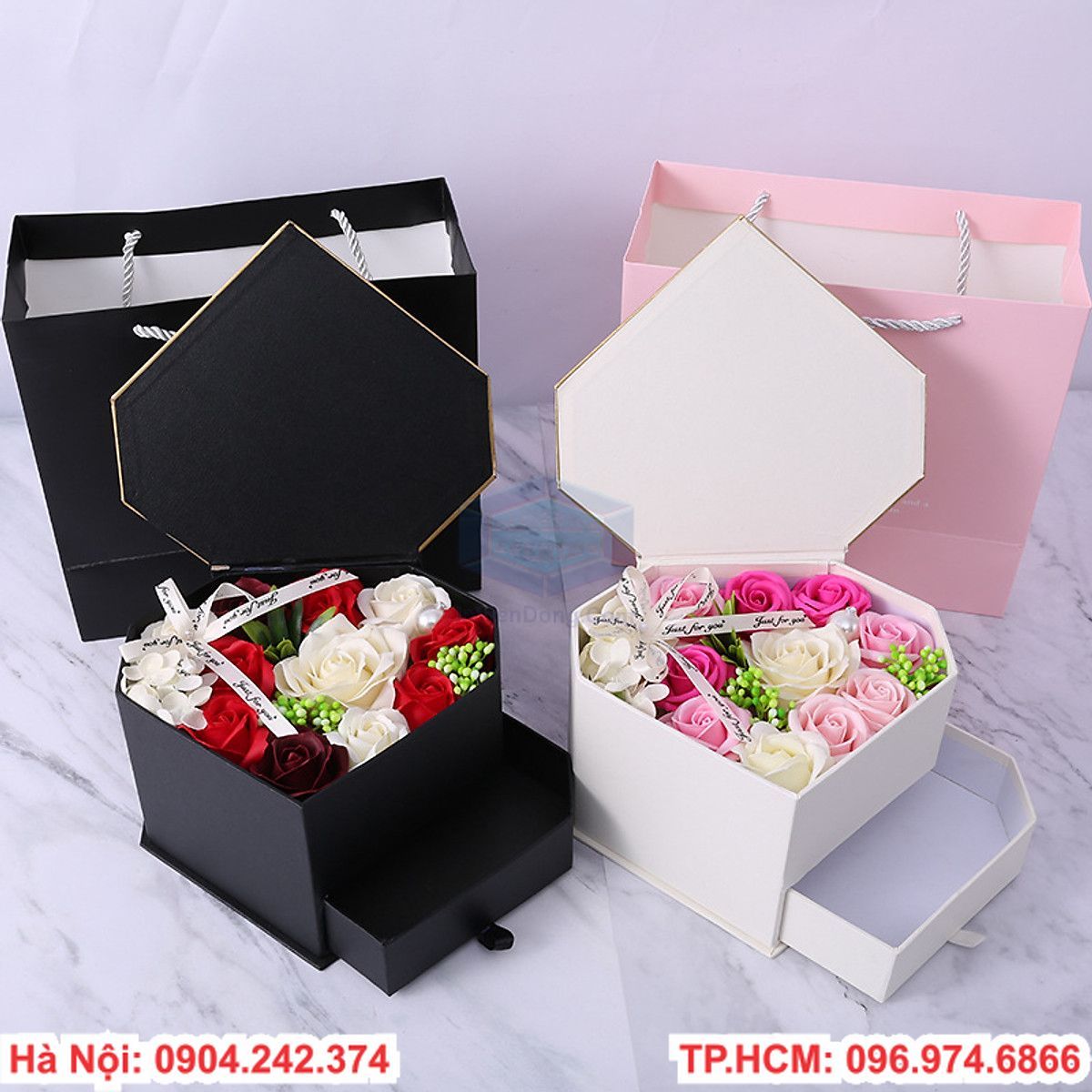 Hộp đựng hoa sáp có ngăn kéo