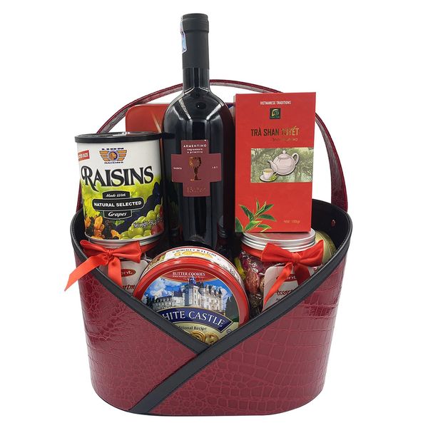 Mẫu giỏ da đựng quà tết có sẵn số lượng lớn