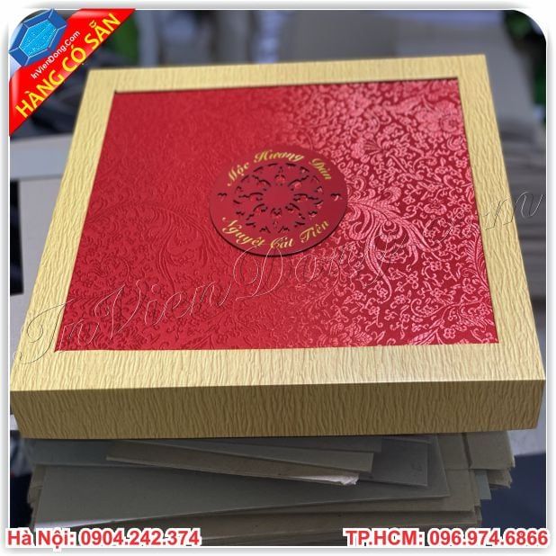 Những mẫu hộp được công ty in nhanh Viễn Đông chúng tôi làm ra một cách tỉ đến từng chi tiết đến từng công đoạn từ việc lên thiết kế chọn màu tông chủ đạo cho chiếc hộp là sự kết hợp hoàn hảo giữa màu đỏ và màu vàng làm cho chiếc hộp trở lên sang trọng nhất khiến cho mọi người chỉ cần nhìn thôi đã cảm nhận được sự đẳng cấp của chiếc hộp giúp tôn lên giá trị món quà của bạn.