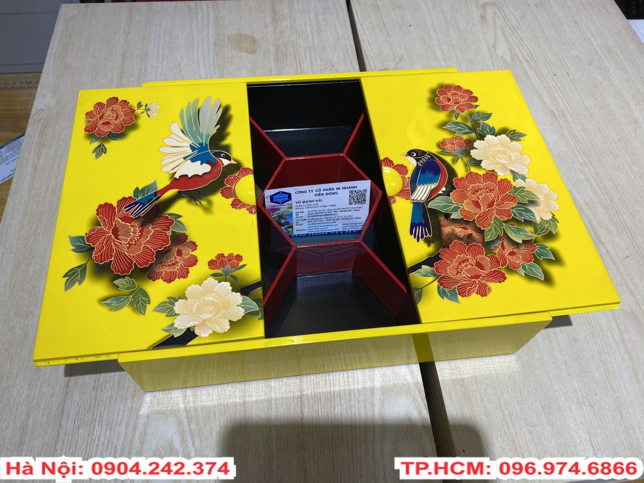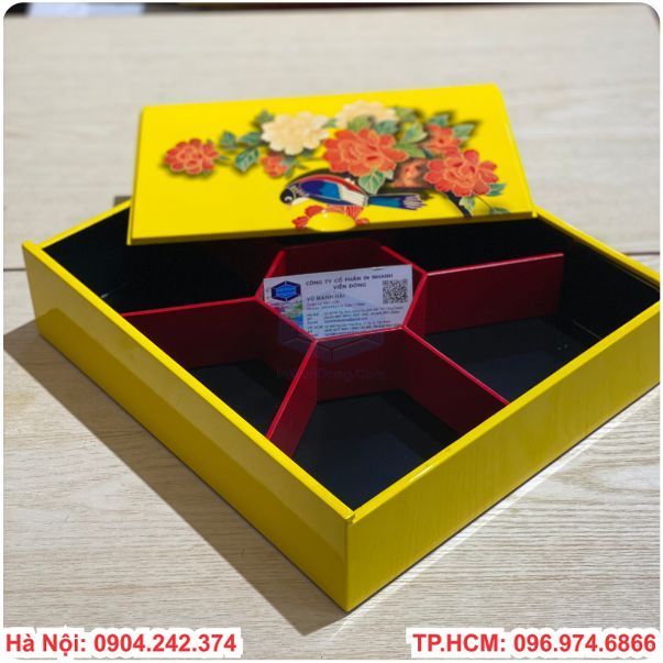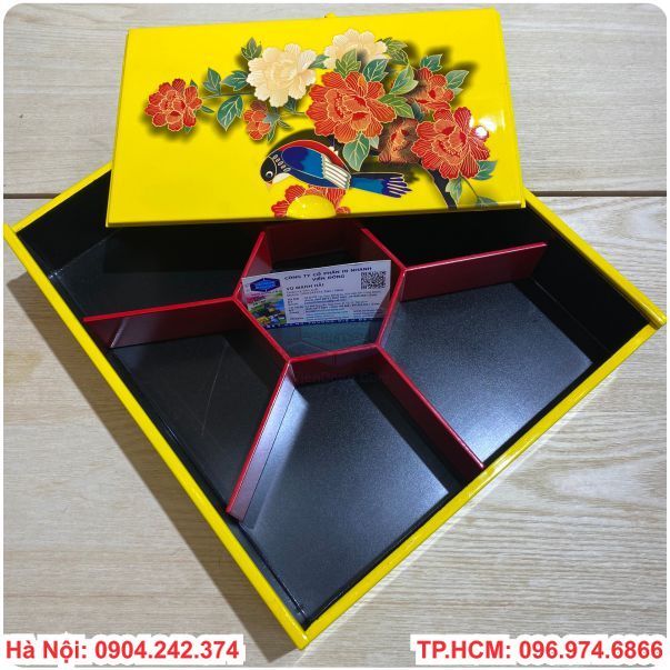 In hộp sơn mài đựng bánh kẹo mứt tết