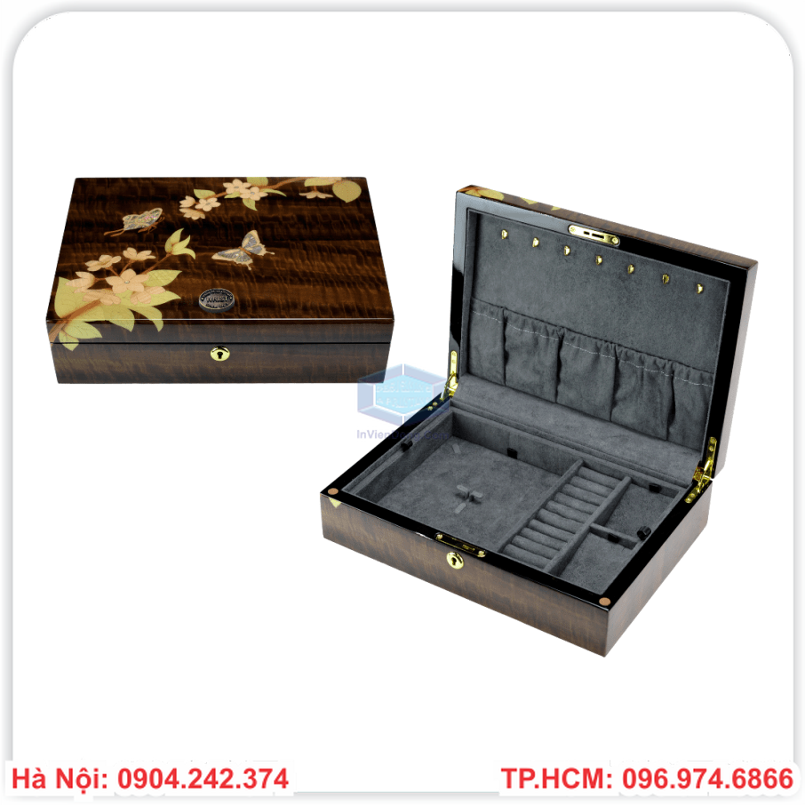 Công ty chúng tôi chuyên cung cấp các mẫu hộp sơn mài đựng trang sức cao cấp và sang trọng dành làm quà tặng cho người thân.Chất liệu gỗ đẹp,đa dạng các mẫu hoa văn là lựa chọn tinh tế dành đến các bà các mẹ và người thân