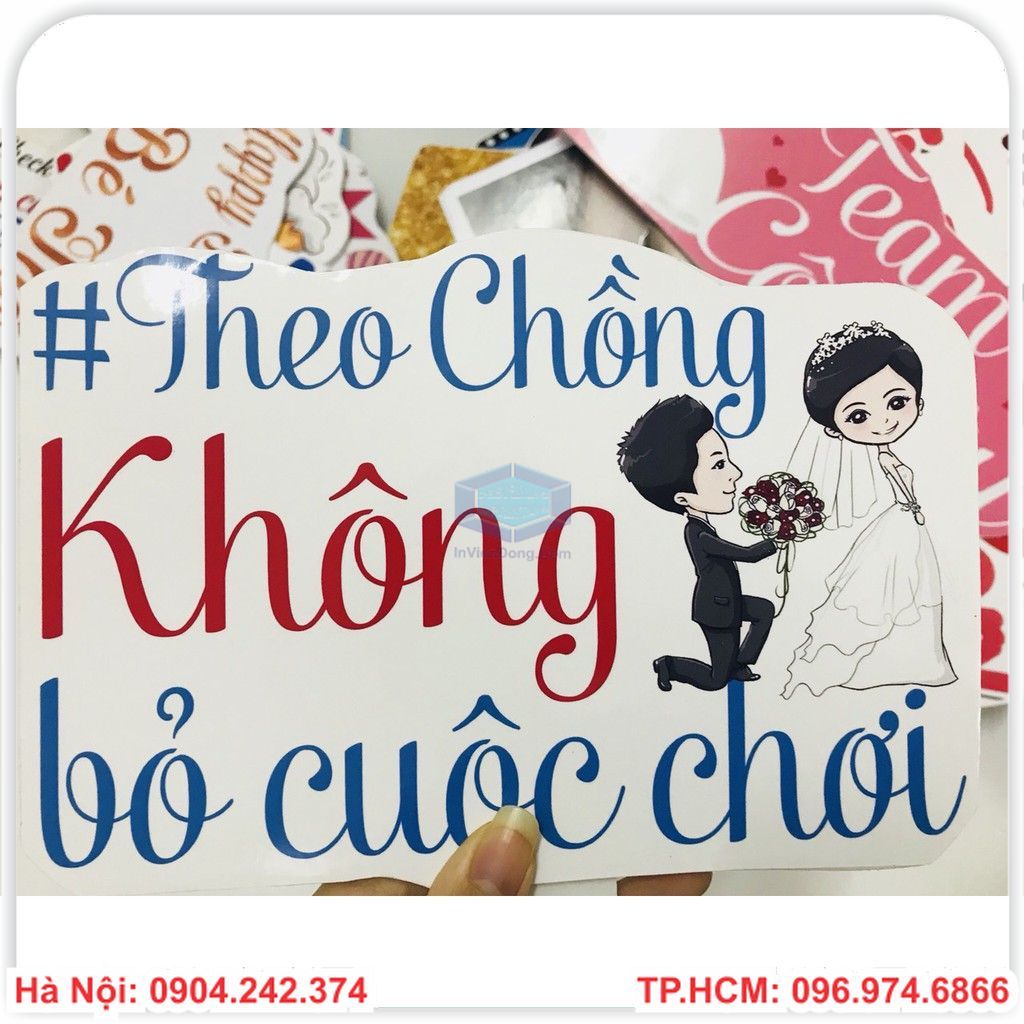 Vào một dịp đặc biệt như đám cưới của các cặp đôi hiện nay,bạn bè và người thân đến tham dự đều muốn lưu giữ những khoảnh khắc cùng cô dâu và chú rể.Theo trào lưu hiện nay,các mẫu hagtag cầm tay đám cưới đều được thiết kế có in hình dâu và chú rể,cùng các câu slogan đặc trưng và dễ thương.