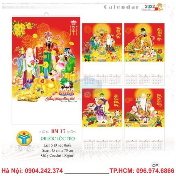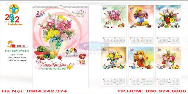 Quy cách in lịch lò xo 7 tờ treo tường 2022: