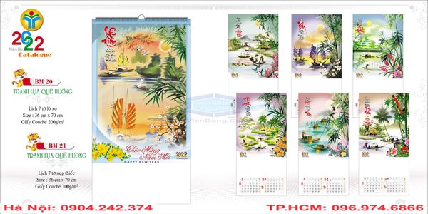 Hiểu được nhu cầu của mọi khách hàng đang muốn mua, thiết kế và in lịch hiện nay nên xưởng IN NHANH VIỄN ĐÔNG chúng tôi đã cho thiết kế và sản xuất ra hàng loạt mẫu lịch lò xo 7 tò với nhiều chủ đề khác nhau. Hiện nay thì tại Xưởng In Viễn Đông chúng tôi đang có các mẫu lịch với nhiều chủ đề như: mẫu lịch phong cảnh, mẫu lịch con người, mẫu lịch tranh dân gian, mẫu lịch phong thủy,…
