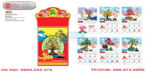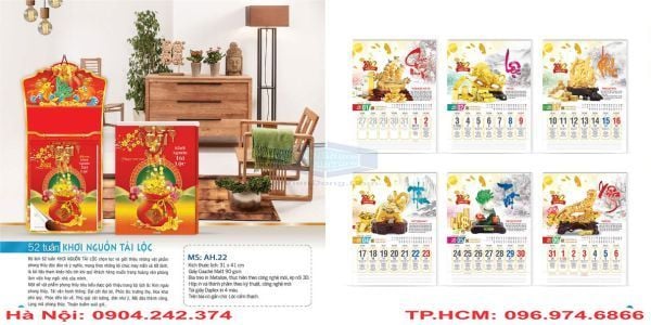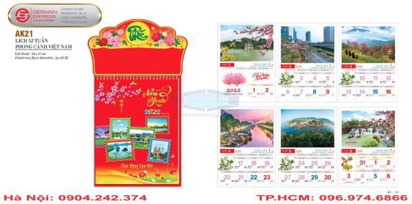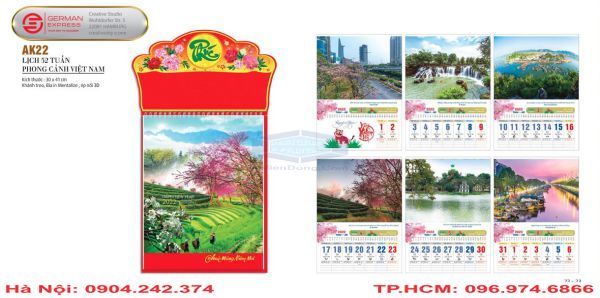 Quy cách in lịch tết bloc 52 tuần 2022: