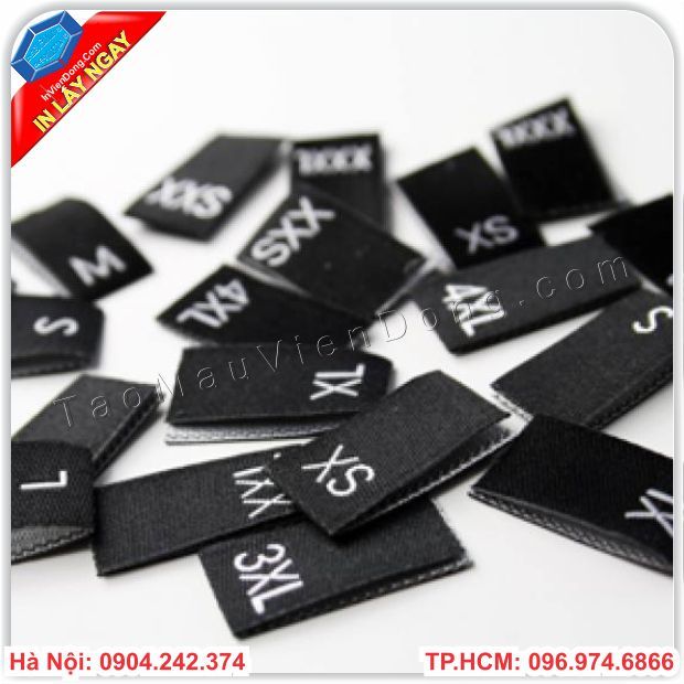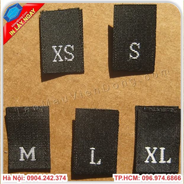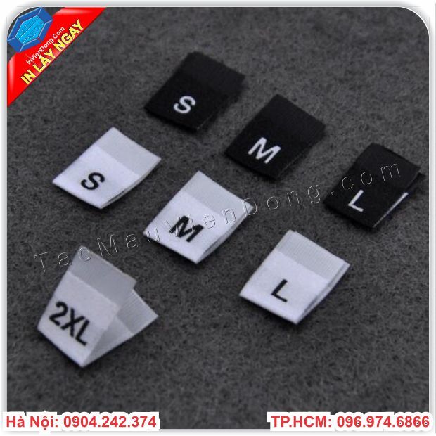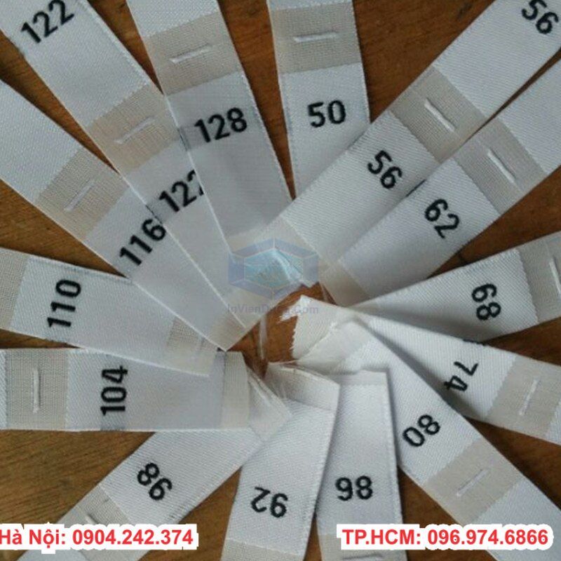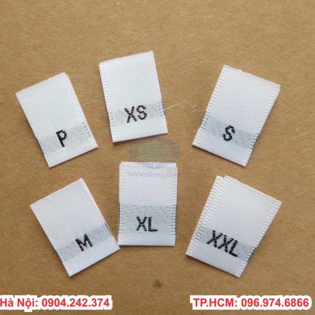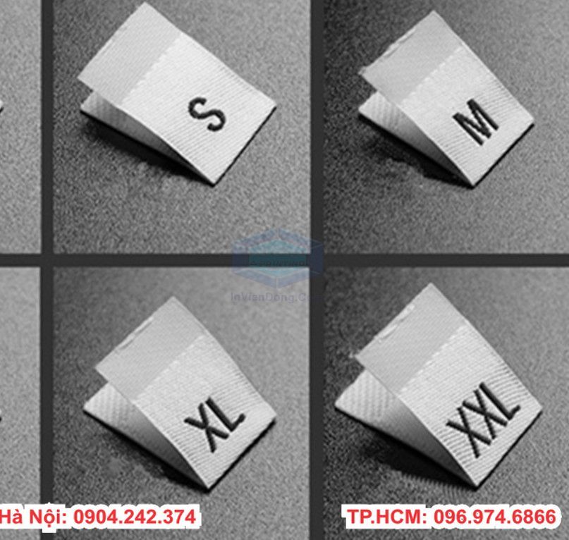 Thông thường chúng tôi có các loại nhãn size như XS, S, M, L, XL hay ta còn có EUR, UK, US và kèm theo mã số. Còn đối với quần áo trẻ em thì các size sẽ được đặt theo 1M, 2M, 3M,... 1Y, 2Y, 3Y,...hoặc có thể theo bất kỳ một biệt hiệu nào đó theo yêu cầu của bạn. Chúng tôi dùng công nghệ in ấn hiện đại cùng máy móc cao cấp nên đã tiết kiệm được rất nhiều thời gian trong việc in mác quần áo và các sản phẩm của chúng tôi làm ra luôn luôn được các khách hàng tin tưởng.