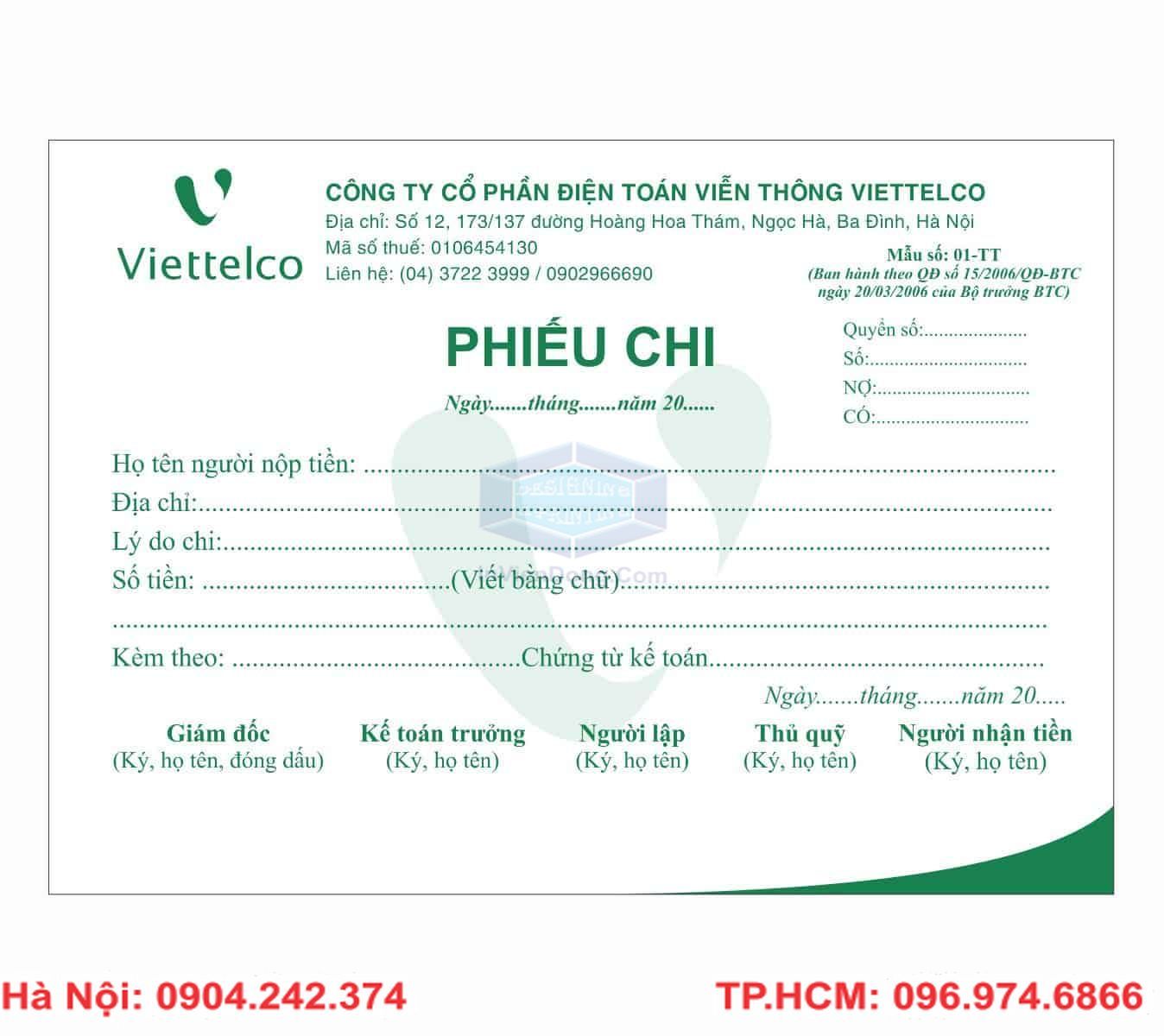 In phiếu thu chi Hà Nội