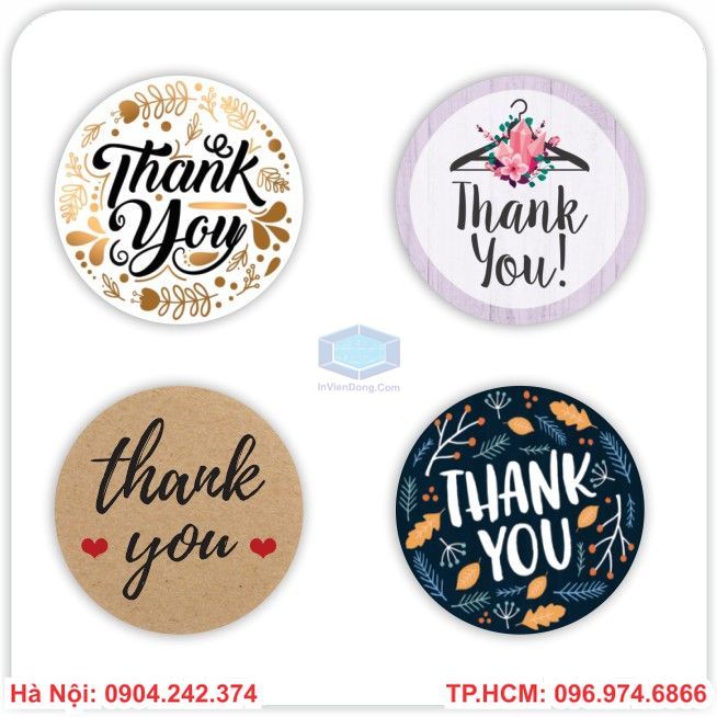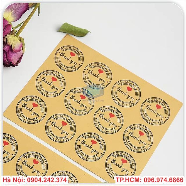Các sản phẩm handmade của bạn sẽ trở nên thật ý nghĩa và chuyên nghiệp hơn khi đi kèm các tem dán sticker cảm ơn là lời tri ân đến khách hàng.Các nhãn dán từ decal trong đến chất liệu giấy dán có thể in nhanh lấy ngay theo yêu cầu của khách hàng