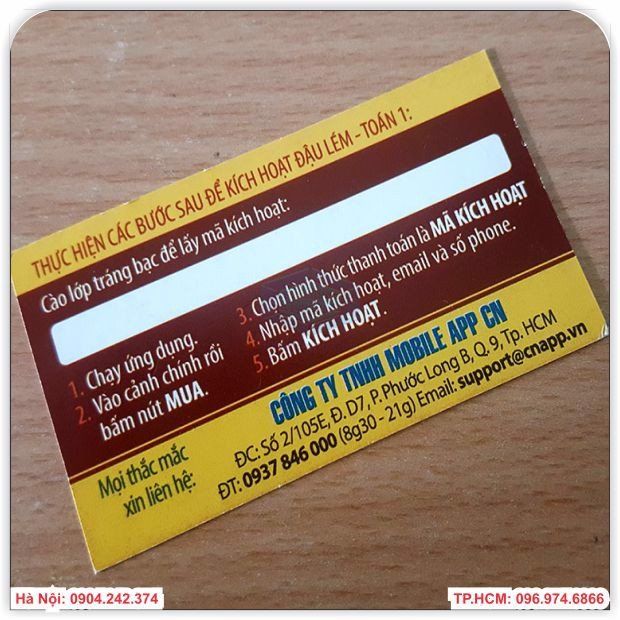 Bạn là công ty,doanh nghiệp đang cần tìm địa chỉ in nhanh các mẫu thẻ cào trúng thưởng cho các chương trình của công ty mình.Bạn cần tìm địa chỉ uy tín và chất lượng tại Hà Nội,và muốn in thử các mẫu thẻ cào trước khi đưa vào sử dụng rộng rãi trên thị trường.