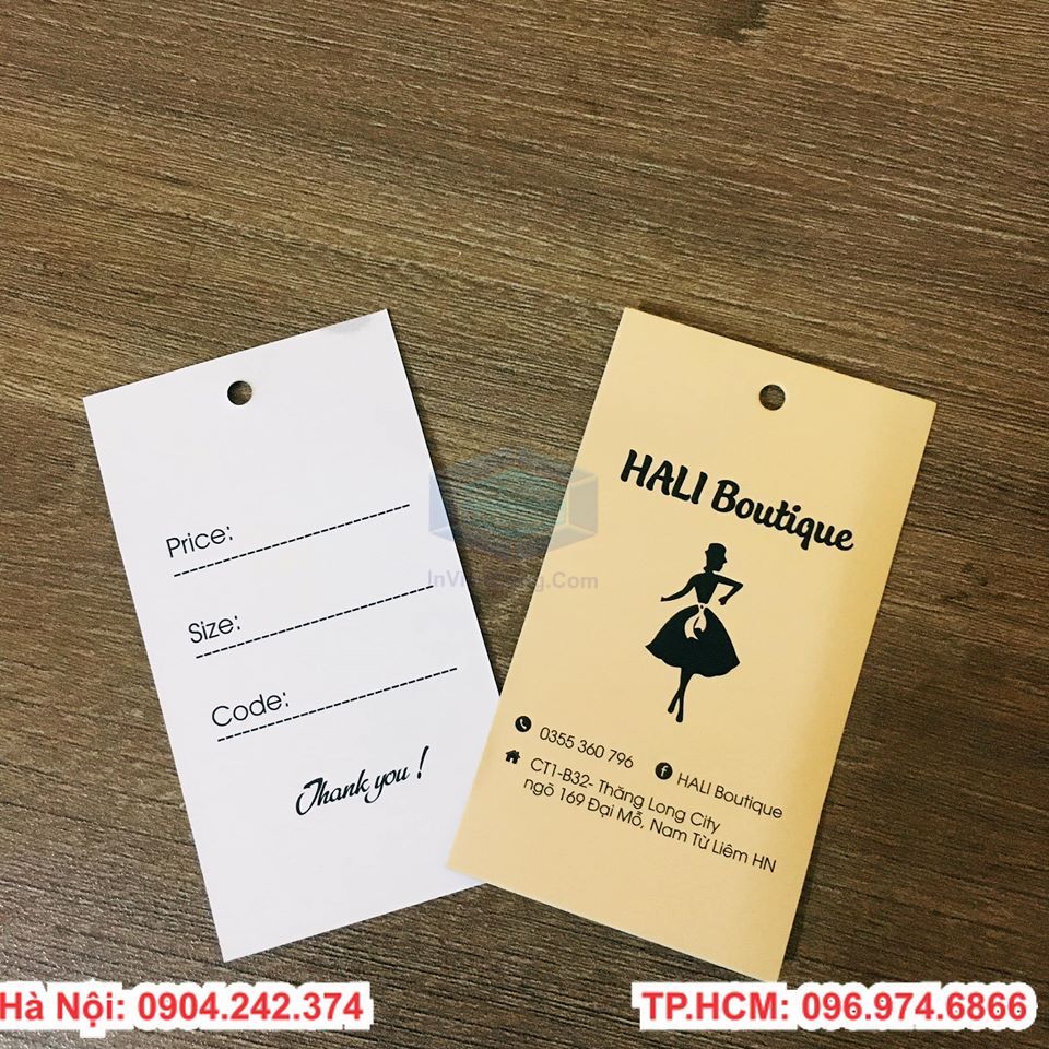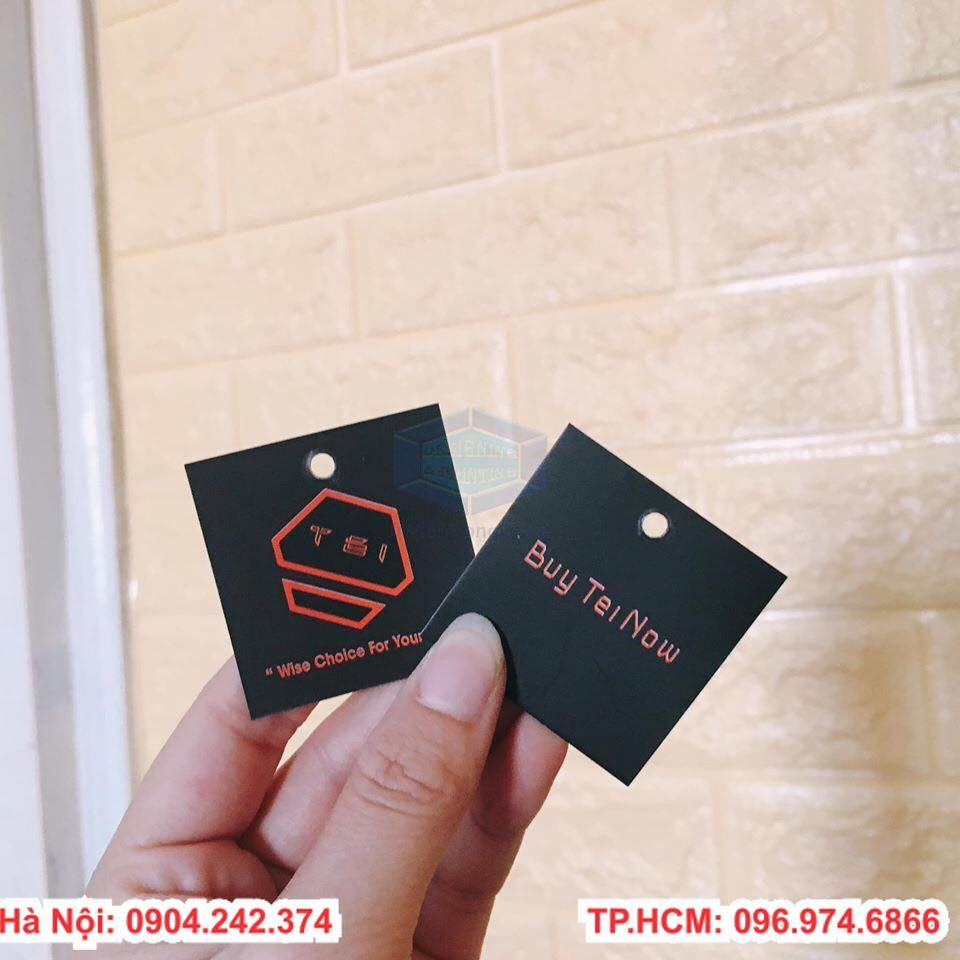 Khi in tag ta cần in đầy đủ các thông tin như nhà sản xuất, tên doanh nghiệp, thông tin của sản phẩm đó và logo của thương hiệu vào thẻ giúp tạo ấn tượng với khách hàng.