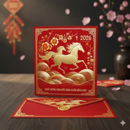In thiệp Tết 2026 thiết kế theo yêu cầu
