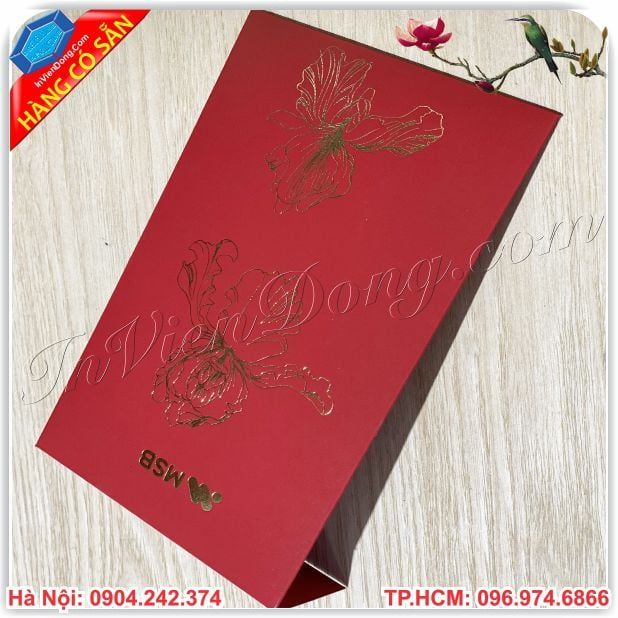 | Quy cách | Giấy cao cấp in và thiết kế theo yêu cầu, hoặc mẫu sẵn có thúc nổi dập nhũ cành đào... | |