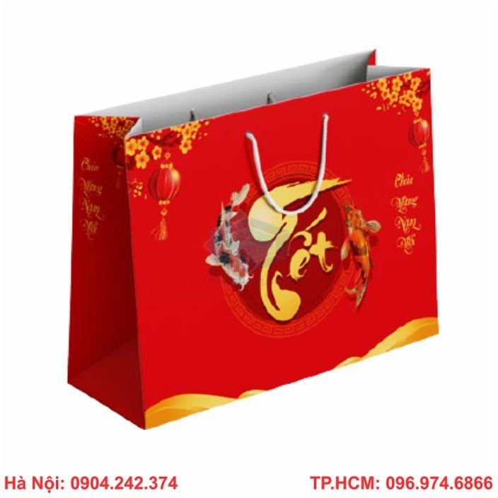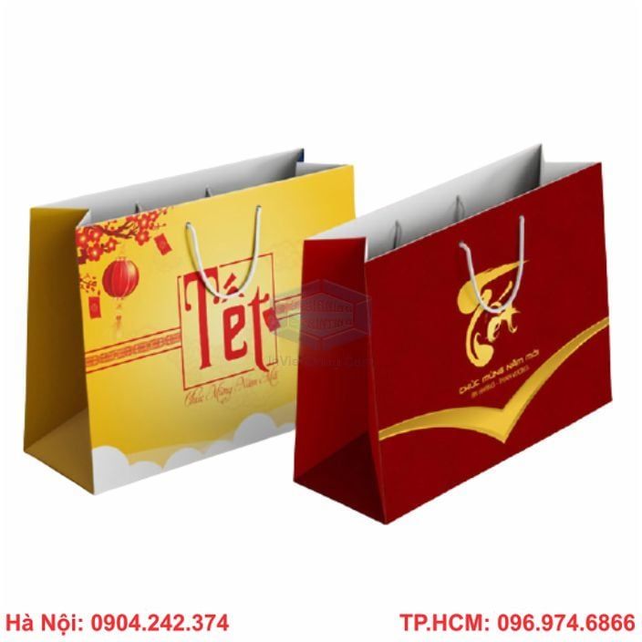 Hầu hết, các cửa hàng bán hàng Tết, đặc biệt là quà Tết luôn luôn phải chuẩn bị túi đựng quà Tết. Hơn thế nữa, họ luôn tìm kiếm những đại lý, công ty chuyên nhận in túi quà tết cho các đơn vị doanh nghiệp phục vụ nhu cầu buôn bán với số lướng lớn nhỏ khác nhau.