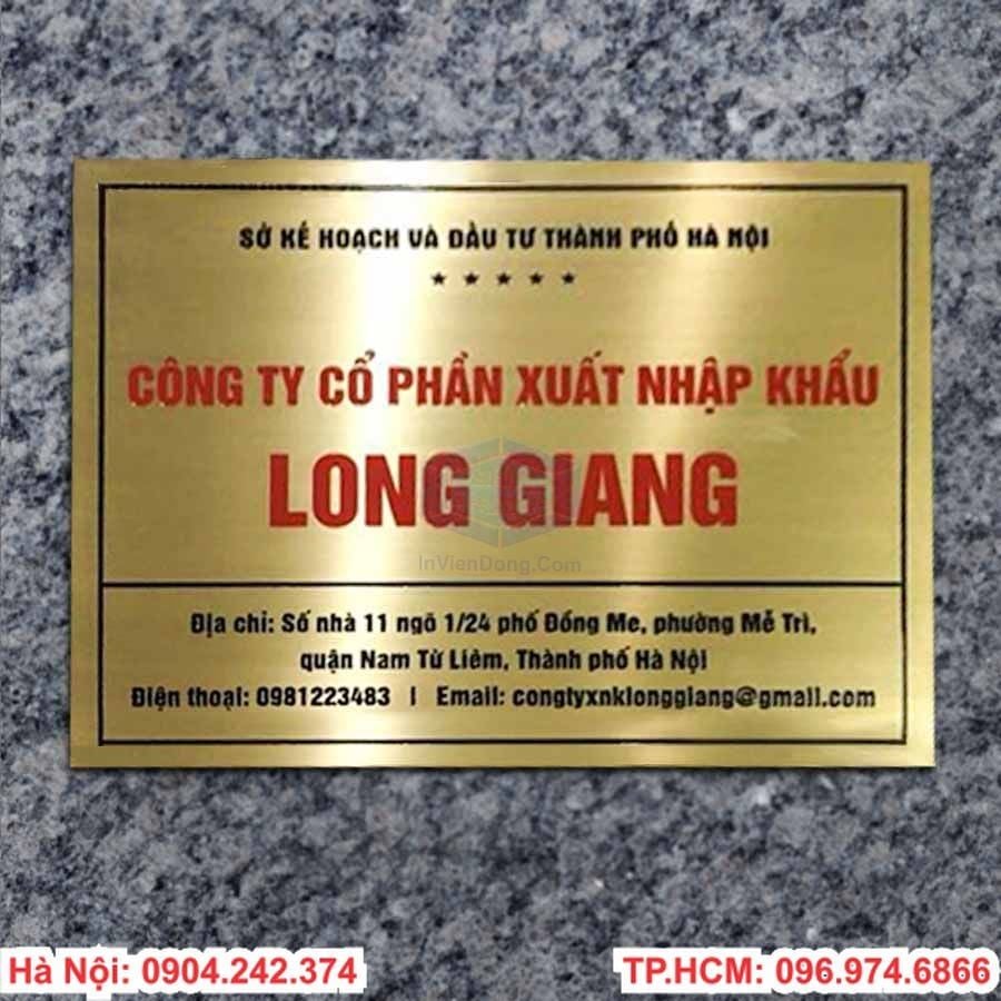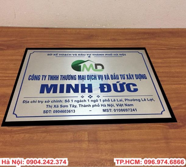 Nếu bạn băn khoăn có thể đặt mua biển hiệu công ty ở đâu, hãy đến với Công Ty Viễn Đông. Tại đây, biển hiệu công ty được chúng tôi sử dụng nhiều chất liệu như inox, hợp kim,...để tạo thành đảm mang lại sự sang trọng, đẳng cấp nhưng vẫn bề bỉ khộng bị ăn mòn hay ỗ hóa theo thời gian. Với công ngệ hiện đại bậc nhất đảm bảo sản phẩm được in khắc sắc nét, tinh tế nhưng vẫn đảm bảo được giá thành rẻ nhất trên thị trường do in trực tiếp tại xưởng không qua trung gian, đảm baaor một cách tối đa quyền lợi cho khách hàng.