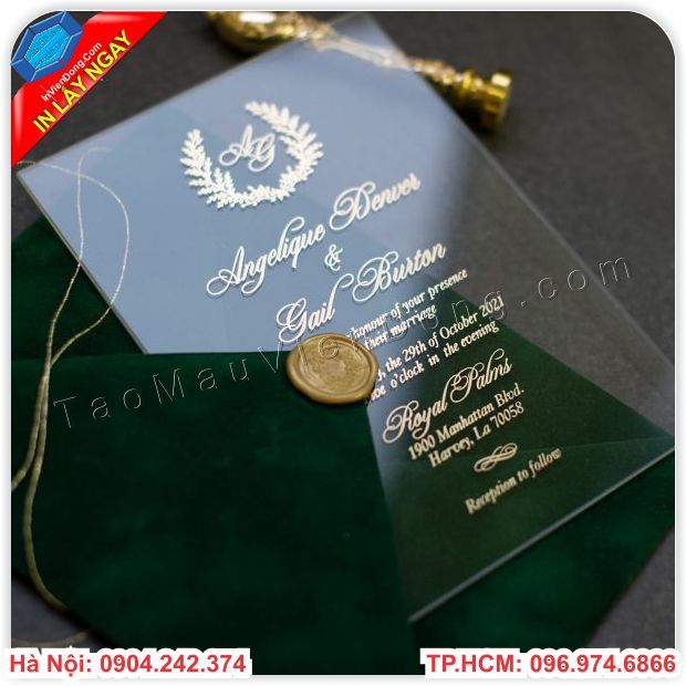 Những tấm thiệp mời có thiết kế độc đáo sẽ luôn tạo ấn tượng tốt và cổ quên đối với khách hàng. Một tấm thiệp mời được làm từ mica là một sáng kiến độc đáo Và là một Lời gợi nhắc về sự kiện khó quên đối với khách mời. Thông thường, các tấm thiệp mời thường được làm từ giấy, tuy nhiên để cho chúng trông thật nổi bật thì những tấm thiệp được làm từ chất liệu mica trong suốt, được khắc chữ và hình ảnh lên sẽ chung thật đặc biệt.