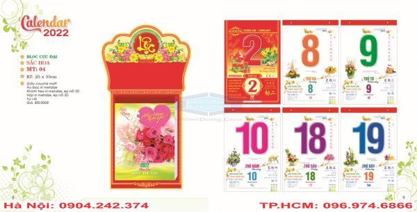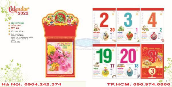 Mẫu lịch bloc cực đại 2022 tại Hà Nội