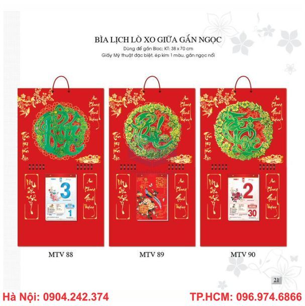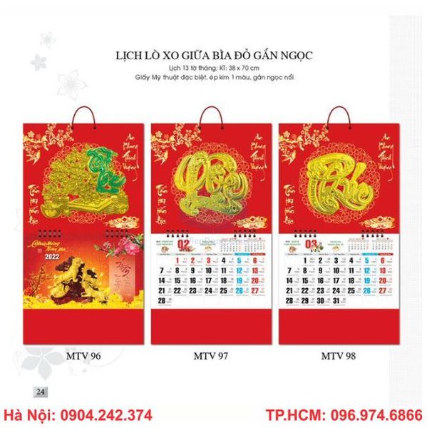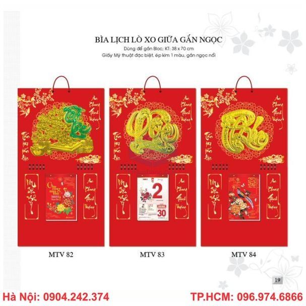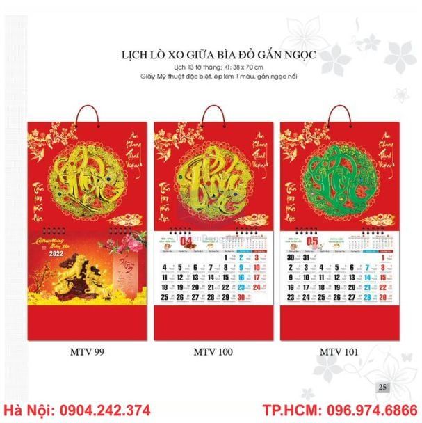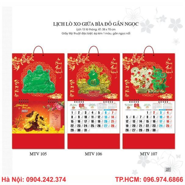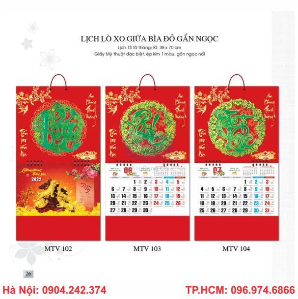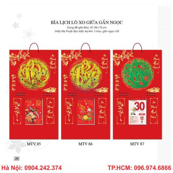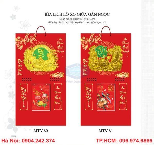 In lịch lò xo giữa bìa đỏ gắn ngọc lấy ngay