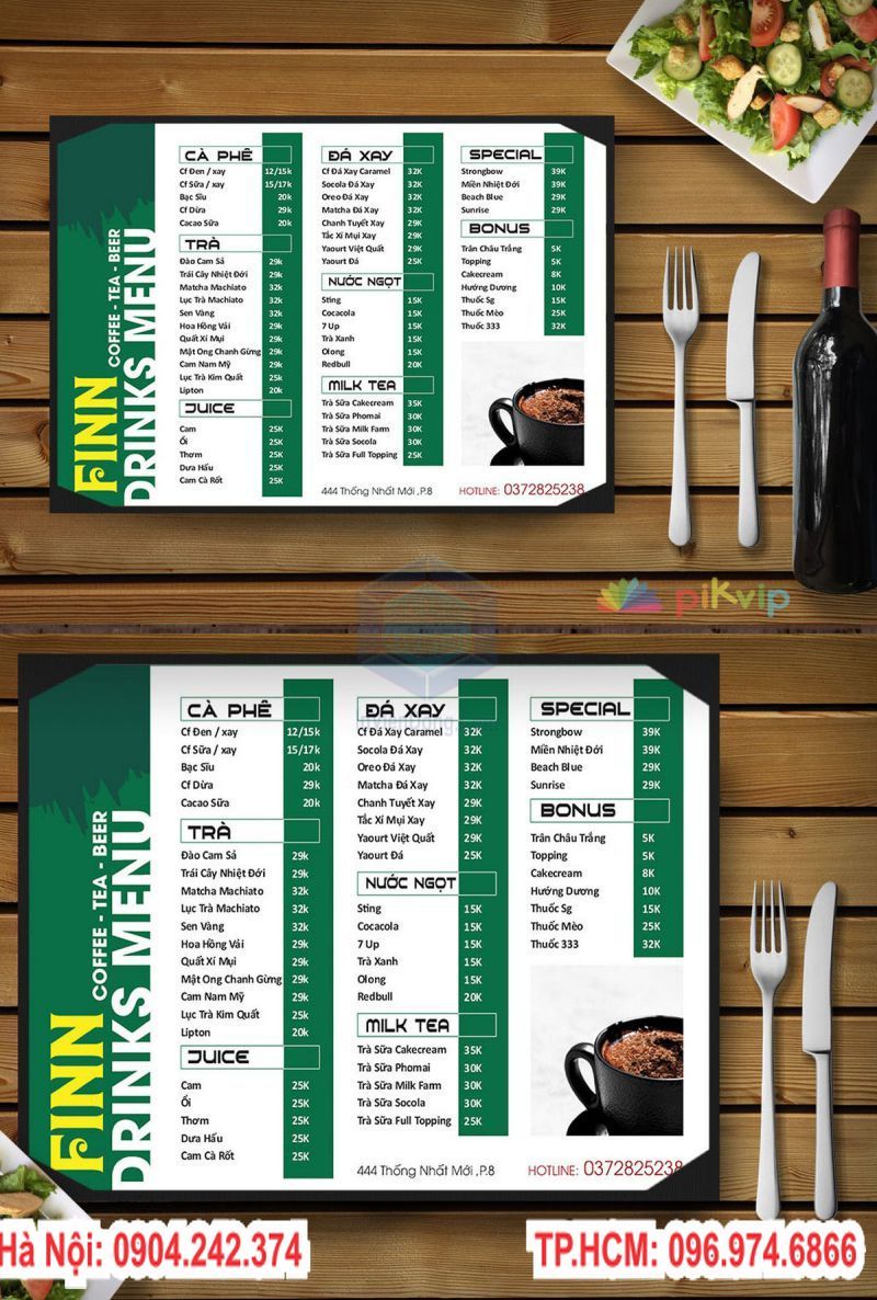In nhanh Viễn Đông là địa chỉ chuyên thiết kế và sản xuất nhiều mẫu menu giá rẻ tại Hà Nội.Những mẫu menu thường được thiết kế sinh động với nhiều màu sắc hình ảnh sắc nét,đây cũng được coi như một chiến dịch quảng cáo hiệu quả đóng góp một phần không nhỏ vào doanh thu của cửa hàng.