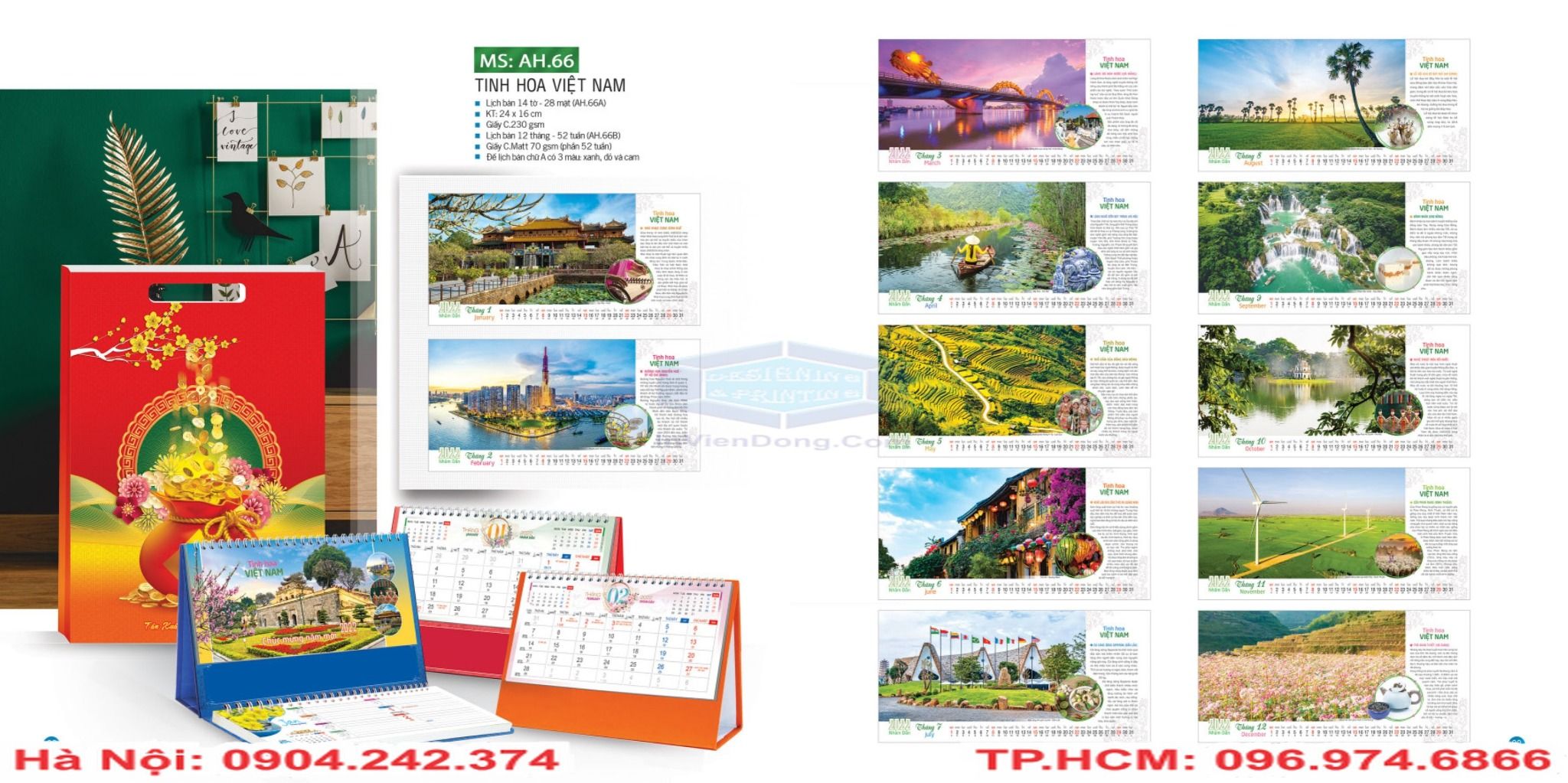 Mẫu lịch để bàn Tinh Hoa Việt Nam