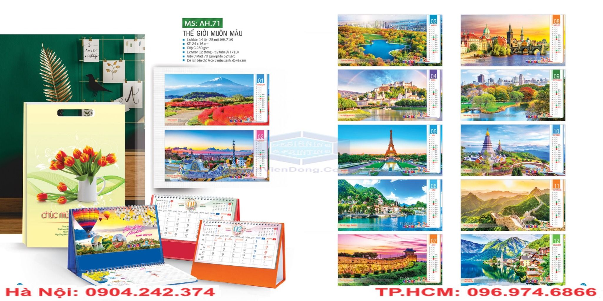 Mẫu lịch để bàn Thế Giới Muôn Màu