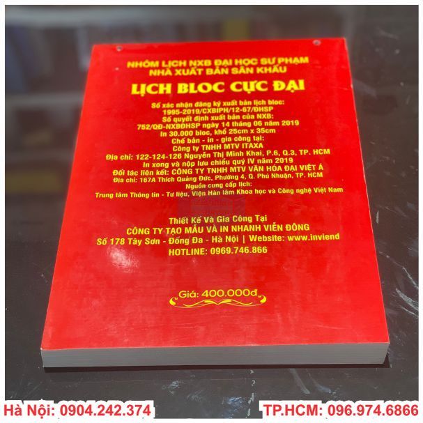 Tại đây chúng tôi có đội ngũ nhân viên thiết kế lâu năm giàu kinh nghiệm trong lĩnh vực in ấn,luôn luôn cập nhập những phương pháp thiết kế mới nhất và nỗ lực không ngừng để tạo nên các mẫu lịch tết bloc cực đại làm hài lòng quý khách hàng. Các mẫu lịch bloc cực đại được thiết kế tại xưởng IN NHANH VIỄN ĐÔNG chúng tôi tuy không khác với các mẫu lịch bloc khá là mẫy nhưng chúng có đặc điểm là hình ảnh có lớn hơn. Điều này giúp người dùng sẽ dễ dàng thuận tiện quan sát, bởi nó được in bằng máy in offset cao cấp nên đảm bảo chất lượng cực khì sắc nét đến từng chi tiết nhỏ. Ngoài ra nếu bạn là doanh nghiệp mà muốn lựa chọn thong tin địa chỉ của mình lên đó thì đội ngũ nhân viên thiết kế của chúng tôi cũng có thể tận tình giúp đỡ bạn. Bạn sẽ được hỗ trợ thiết kế miễn phí cũng như in tên logo thương hiệu, địa chỉ của doanh nghiệp, hỗ trợ in test thử trước khi đưa ra sản xuất số lượng lớn. Miễn phí vận chuyển toàn quốc, mẫu mã đa dạng, In nhanh lấy ngay. Giao Hàng Tận Nơi, đúng mẫu mã số lượng yêu cầu.