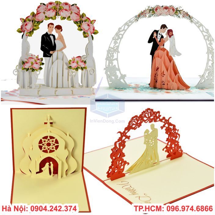 Những tấm thiệp in 3D thường được lựa chọn in từ những chất liệu cao cấp, sau đó được in và chế tác rất tinh mỹ để khi mở ra sẽ hiện các hình khối, họa tiết nổi,...Vẻ đẹp này chắc chắn sẽ có thể làm vừa lòng những cặp uyên ương đang tìm kiểm một điều đặc biệt cùng khác biệt để thay mặt lời báo hỷ.
