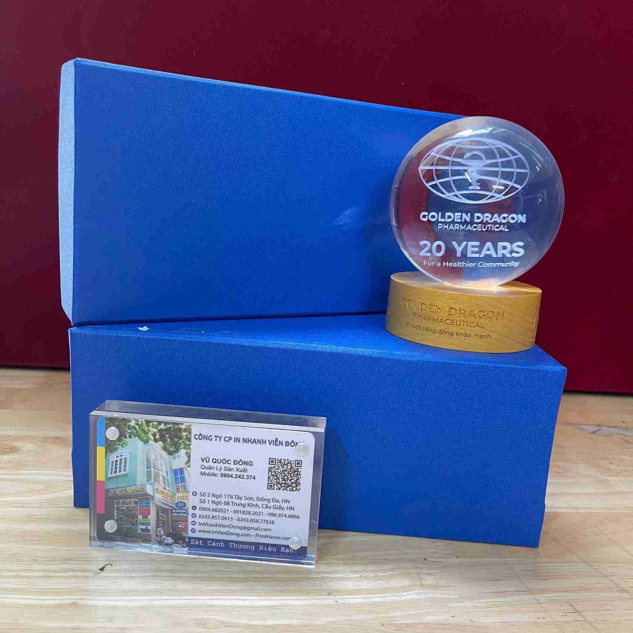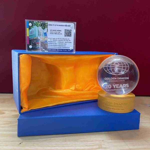 Trong những sự kiện quan trọng như kỷ niệm ngày thành lập, lễ trao giải hay gặp gỡ đối tác chiến lược, một món quà tinh xảo chính là "đại sứ" truyền tải tâm ý và tầm vóc của doanh nghiệp. Quả cầu pha lê khắc laser 3D đi kèm hộp quà tặng lót lụa sang trọng tại in nhanh Viễn Đông chính là sự lựa chọn hoàn hảo để tôn vinh những giá trị bền vững.
