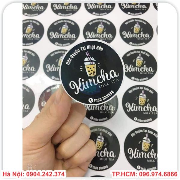 In nhanh các mẫu tem decal dán ly trà sữa,đồ ăn vặt nhiều thiết kế và kích thước.Với chi phí rẻ và có thể in được số lượng ít hoặc nhiều tùy vào nhu cầu sử dụng của người bán,hiện nay những mẫu tem này đang được sử dụng rộng rãi.Những mẫu tem giấy này mặt sau thường được phủ một lớp keo chắc chắn,mặt trước thì được tráng một lớp cán bóng chống thấm nước và bụi bẩn.