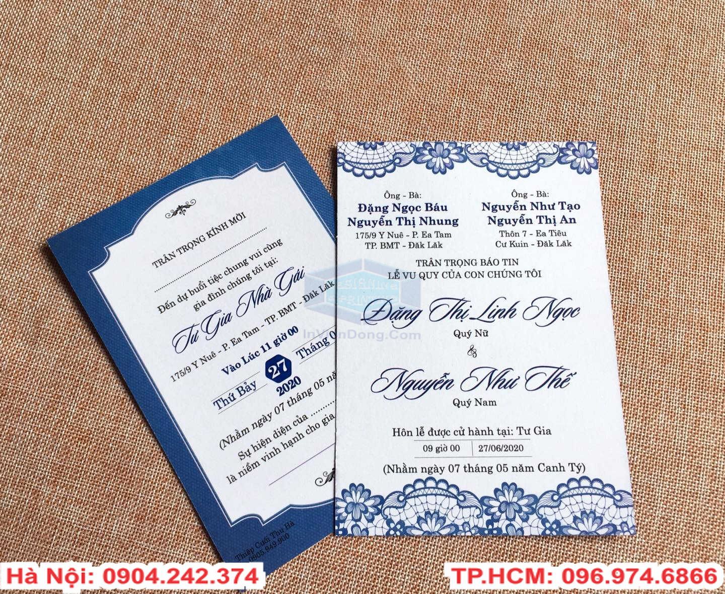 Tại Công Ty In Nhanh Viễn Đông, có sẵn hàng ngàn mẫu thiệp mời của từng loại nên bạn hoàn toàn có thể đến tận nơi lựa chọn theo ý muốn hoặc lựa chọn thiết kế riêng cho bản thân một mẫu sản phẩm hoàn toàn mới mà không sợ mất thêm bất kỳ một chi phí thiết kế nào. Sản phẩm được in từ công nghệ tiên tiến nhất cho ra màu sắc đẹp, chữ viết sắc nét mà không sợ bị lem màu. Ngoài ra, Viễn Đông có dịch vụ in nhanh lấy ngay và giao sản phẩm ngay trong ngày nên khách hàng có thể yên tâm không sợ mất thời gian qua lâu để có thể nhận được sản phẩm.