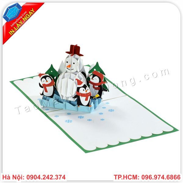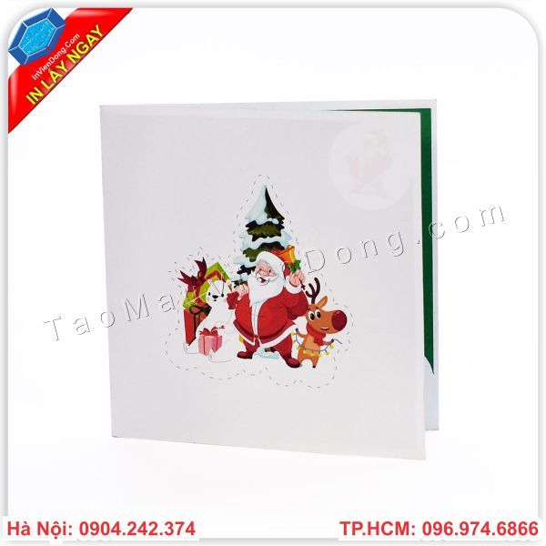 Thiệp 3D Giáng Sinh là món quà độc đáo cho mùa giáng sinh năm nay. Giáng Sinh là dịp để chúng ta bày tỏ tình cảm đối với những người mà ta yêu thương, là dịp mà các bạn có thể dành tặng cho người thân yêu của mình những món quà giáng sinh ý nghĩa. kèm theo những món quà như bó hoa tươi thắm, chiếc ảnh gỗ xinh xinh là những chiếc thiệp được ghi những lời chúc ý nghĩa, và in thiệp chúc mừng 3D chính là sự lựa chọn hoàn hảo lúc này. Với bộ quà tặng giáng sinh như vậy chắc hẳn người nhận sẽ cảm kích tấm lòng chân thành của bạn.