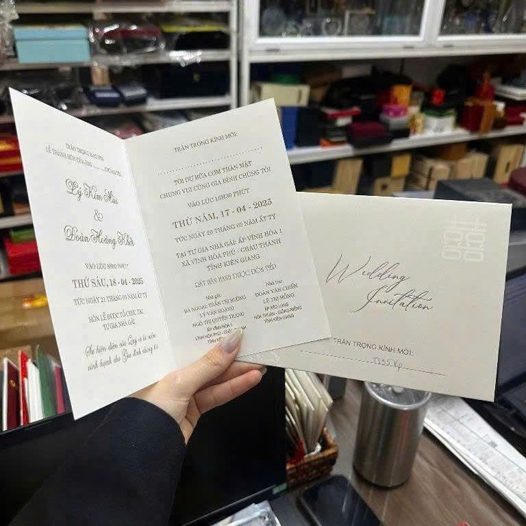 Một đám cưới hoàn hảo bắt đầu từ tấm thiệp mời chỉn chu. Không chỉ là lời thông báo, thiệp cưới còn là lời chào trang trọng, thể hiện gu thẩm mỹ và sự trân trọng của cô dâu chú rể dành cho khách mời. Bạn đang tìm kiếm một đơn vị in thiệp cưới uy tín với những mẫu mã dẫn đầu xu hướng? Hãy để In nhanh Viễn Đông giúp bạn ghi dấu ấn ngay từ cái nhìn đầu tiên.
