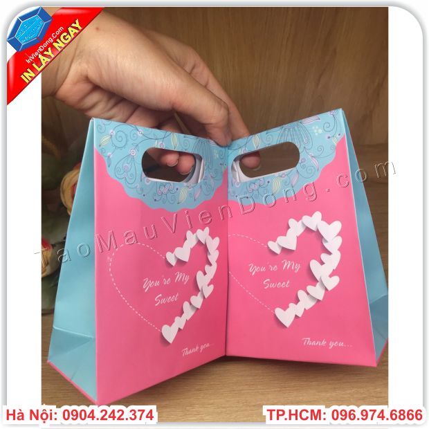 Chất liệu : Túi giấy được làm bằng các loại giấy như IVR , giấy Coucher , giấy Duplex … được in trên máy công nghiệp hiện đại của nhật bản đảm bảo độ sắc nét, màu sắc bắt mắt trẻ trung chính vì lẽ đó việc in túi giấy cho sản phẩm là điều mà bất cứ doanh nghiệp nào cũng phải thực hiện trong việc kinh doanh của mình.